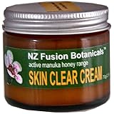 Manuka Cream 70gr/2.5oz. Contains UMF® 20+ Active Manuka Honey, manuka oil, and kanuka oil to control bacterial growth, actively support the skin's own defense mechanisms and help keep the skin clear and healthy. Now produced by NZ Fusion Botanicals, this cream contains a higher proportion of active Manuka Honey and manuka/kanuka oils. This product is formulated with organic aloe vera juice instead of water, thus increasing its soothing properties. The addition of three astringent ingredients, witch hazel, jojoba oil and rosemary, helps to accelerate the healing of skin blemishes. Stress, hormones (such as puberty and premenstrual hormone changes), some medications, diet and general changes during the teen years or pregnancy are all factors that can give rise to compromised immune defenses in the skin. It is during such times that this Manuka Cream can support the skin's immune defenses and promote healthy intact skin, particularly on the face. This cream is formulated with an emphasis on botanical ingredients, using organic components when feasible. This results in a 73% organic content and 91% overall natural composition. Read more